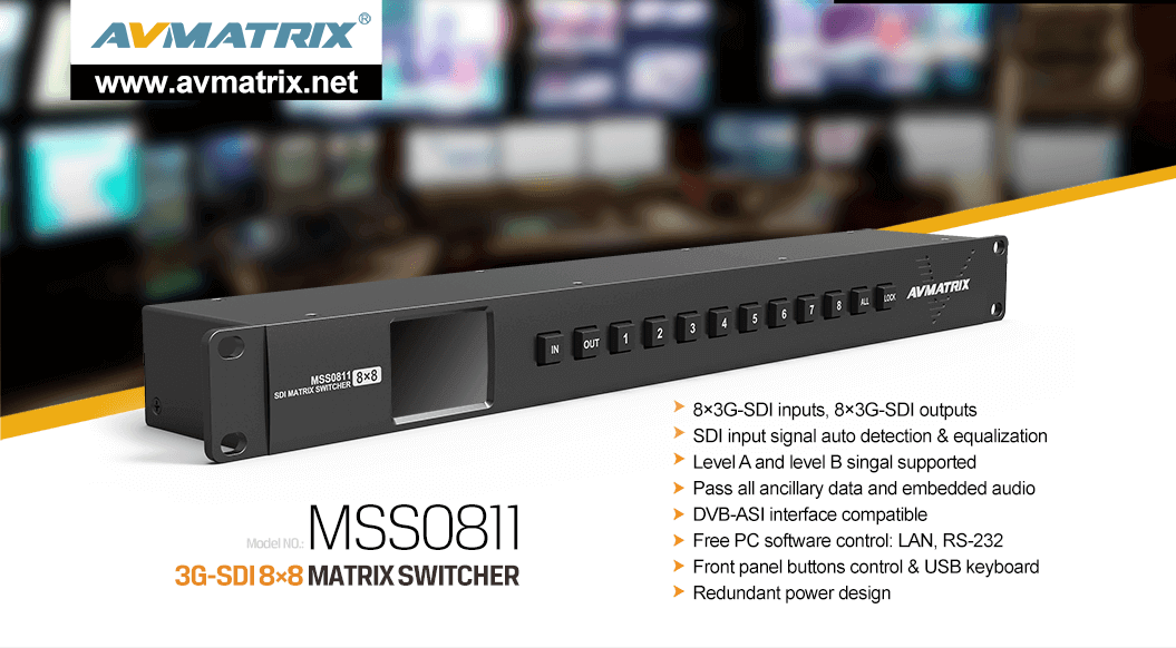 AVMatrix MSS0811- 1RU 8×8 3G-SDI Matrix Switcher